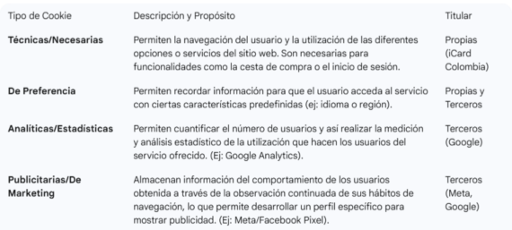 iCard Colombia utiliza cookies propias y de terceros con diferentes finalidades: